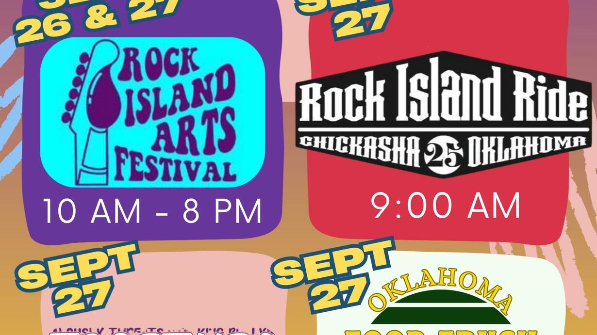 #RockIslandWeekend #ChickashaOK #Oklahoma #OKC #TravelOK #OnlyinOKShow #FoodTrucks #OklahomaFood #CommunityEvent #SupportLocal #CharityBikeRide #ArtsFestival #EndDomesticViolence #ICAN #Podcast #OklahomaPodcast #HeartlandFlyer #Amtrak #GradyCounty #WingTs #NicomaPark #ThingsToDoInOklahoma #OKEvents #AdventureOklahoma