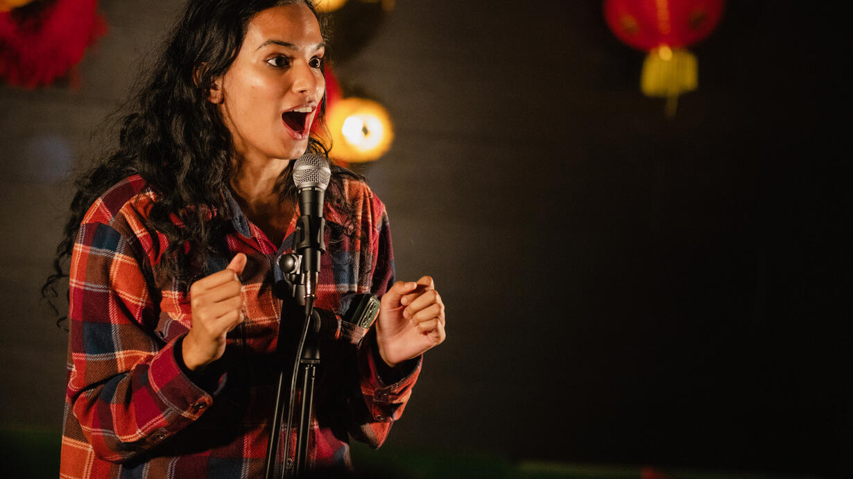 Fooling media outlets into thinking she created the Netflix series Emily in Paris may have won the comedian and Fordham grad Abby Govindan plenty of new followers on Twitter in 2021, but it didn’t go a long way in making her the pride of her Indian American family back home in Houston. It’s just one of the stories Govindan shares in her debut Off Broadway one-hander, “How to Embarrass Your Immigrant Parents,”produced by the comedians Hasan Minhaj and Daniel Sloss.