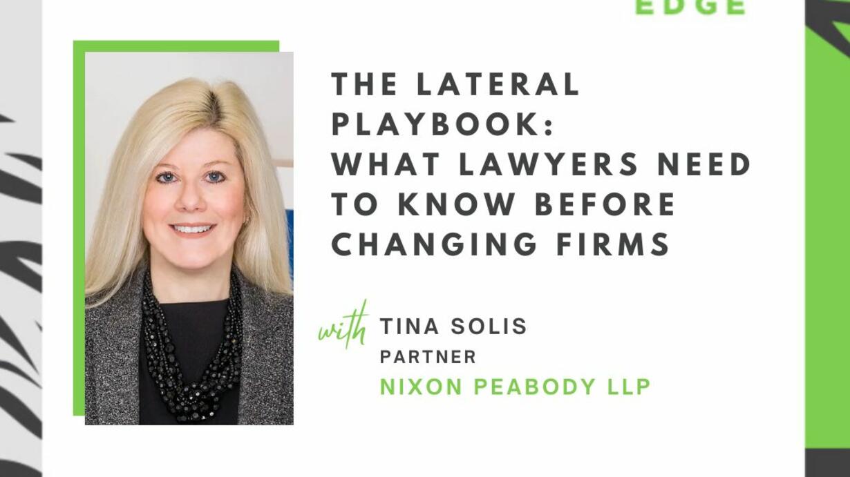 In this episode of The Lawyer's Edge podcast, Elise speaks with Tina Solis about why it’s essential to approach a lateral move with the same care and planning you’d devote to a major client matter. Tina shares practical advice on how to prepare, avoid common missteps, and make informed decisions that protect your reputation, relationships, and future success.
