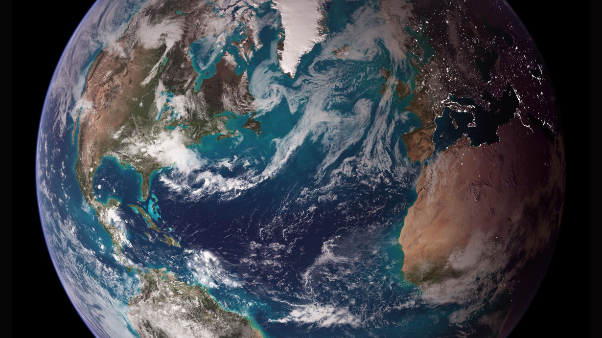 Image: Earth, Blue Marble Western Hemisphere, NASA images by Reto Stöckli, based on data from NASA and NOAA., Terra MODIS, PD, Wikimedia Commons.
