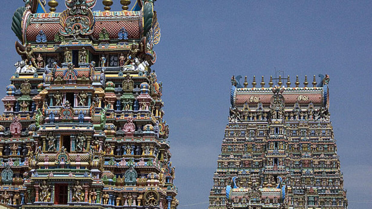 Towering above the city of Madurai, the gopurams or gateways of the Meenakshi Amman Temple are medieval skyscrapers, awash in color, writhing in movement, beautiful and otherworldly at the same time.