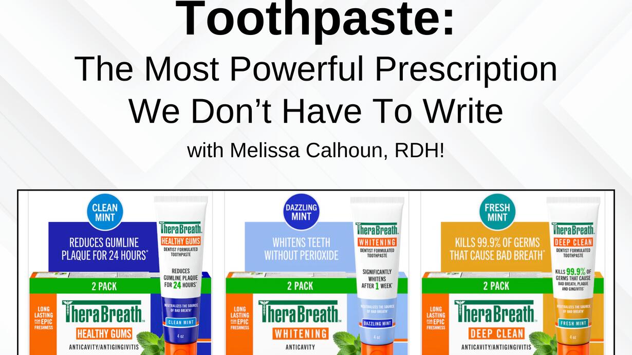 In this special bonus episode brought to you in partnership with TheraBreath, Andrew Johnston sits down with Melissa Calhoun for an in-depth discussion about all things toothpaste—why it's more than just a routine product, how active ingredients play a crucial role, and why switching up your toothpaste based on patient needs really matters. They dive into the evidence-based approach to oral hygiene recommendations, spotlighting TheraBreath's new line of toothpastes and what sets them apart.