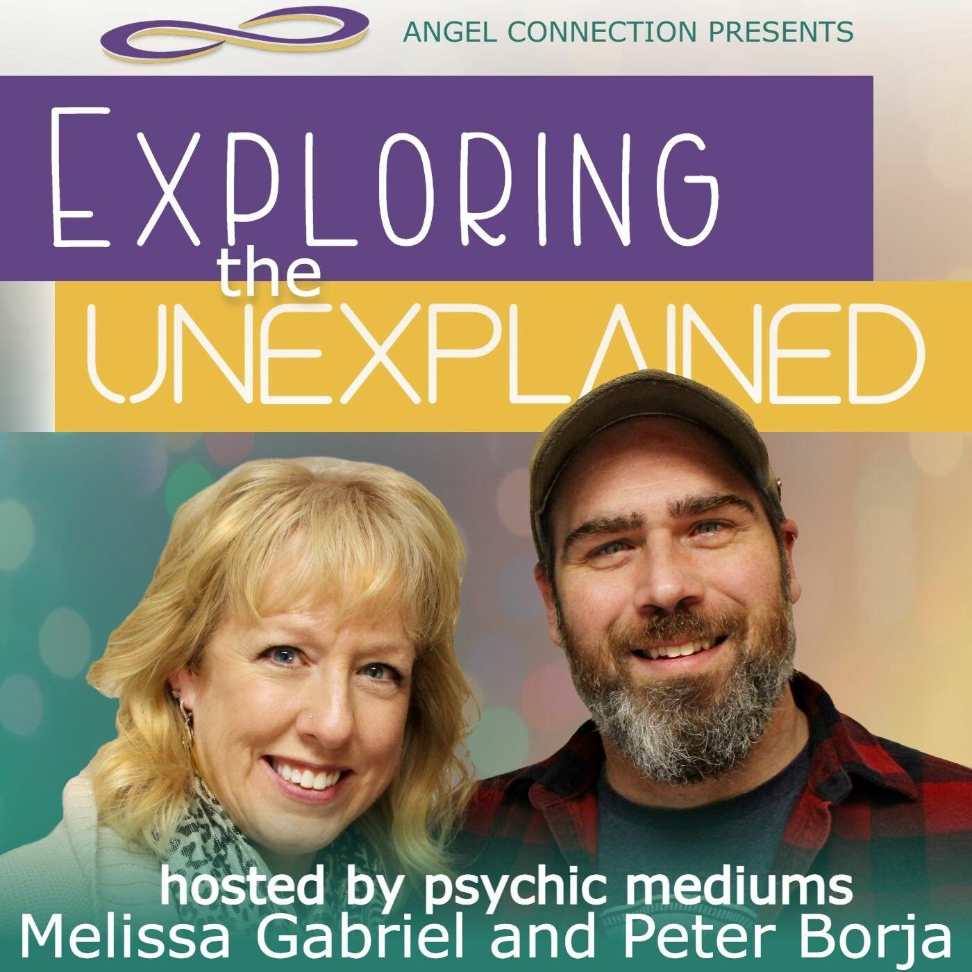 Welcome to ‘Angel Connection presents Exploring the Unexplained’ hosted by psychic mediums Melissa Gabriel and Peter Borja. Through informative and inspirational discussions, this weekly podcast discusses the experience of being able to access psychic medium abilities, investigating paranormal subjects, and sharing their experience of navigating the spiritual realm. Join Melissa and Peter in their honest and open discussions on a variety of topics and listen in on their messages that serve as a light and fun experience with each episode while providing invaluable information for those interested in discovering their spiritual selves.