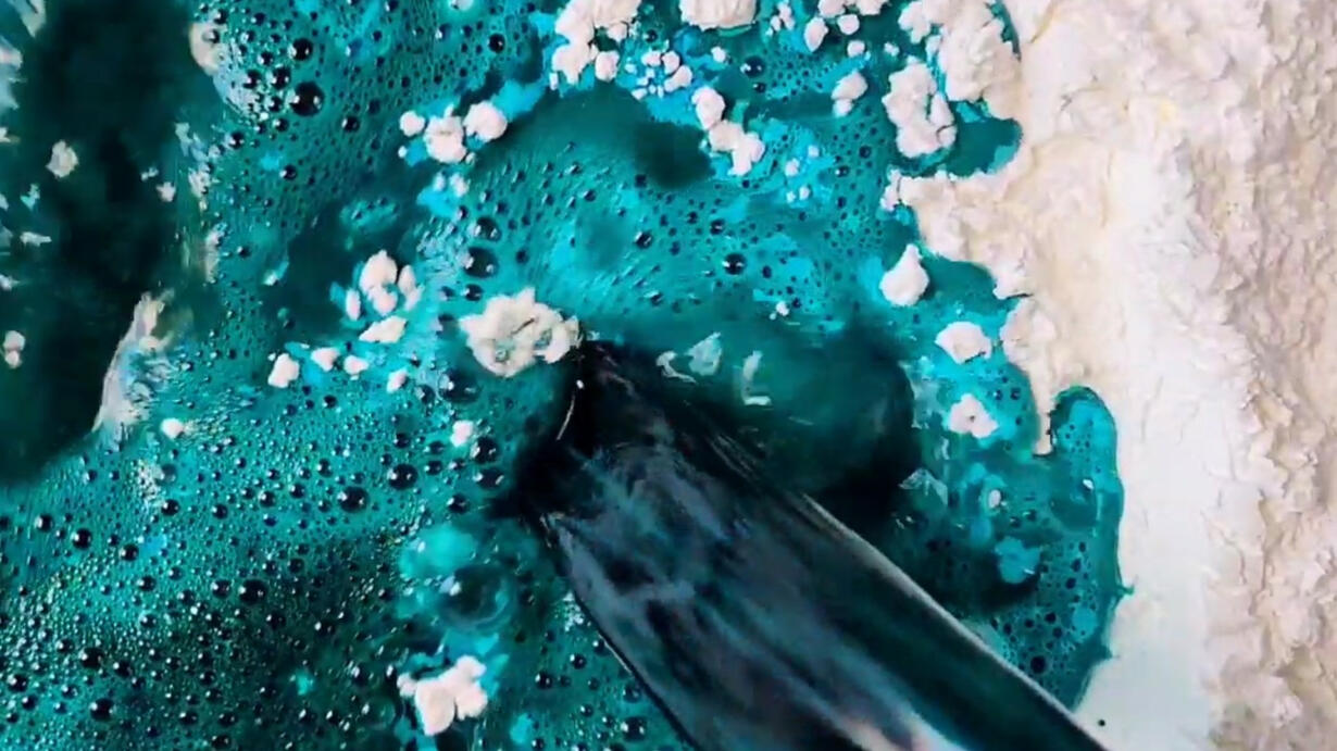 Dyed Chalk Cubes, Cornstarch Crunchies, Paste Mixing, Pouring into Molds