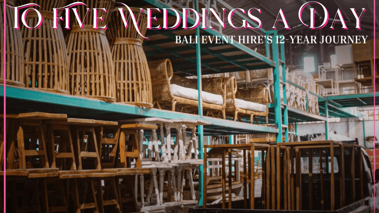 It’s raw, it’s real, and it’s full of laughs, inspiration, and behind-the-scenes insights into what it takes to build one of Bali’s most-loved wedding hire companies.