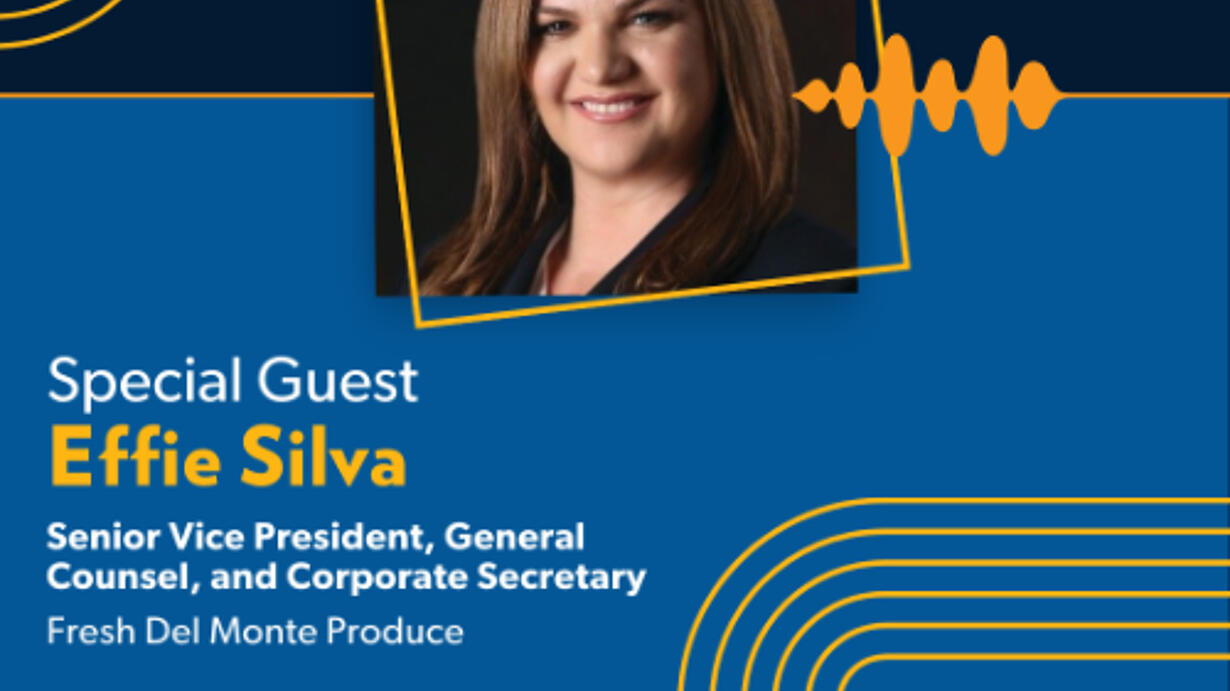 From her early days as a competitive collegiate athlete to becoming a leading figure in the legal industry, Effie Silva, Senior Vice President, General Counsel, and Corporate Secretary of Fresh Del Monte Produce, has faced numerous challenges and setbacks. One pivotal moment in her career was when she was on track to make partner at a law firm but ultimately did not. This experience, though initially disheartening, became a turning point for Effie. Listen in as she shares with host Rebecca Glatzer how she adopted a mindset that things do not happen to you, they happen for you, which propelled her to reassess her goals and strategies and led to a highly successful in-house career.