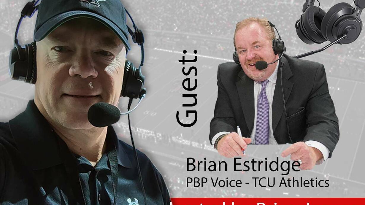For more than two decades, Brian Estridge has been known as the voice of TCU Athletics, but his interest in radio and a career in broadcasting began at age 14. Hear the stories of his "pivots" through the pandemic, broadcasting Big 12 college athletics while watching a monitor from home, his prep work and how it resembles the sports he calls, and much more!