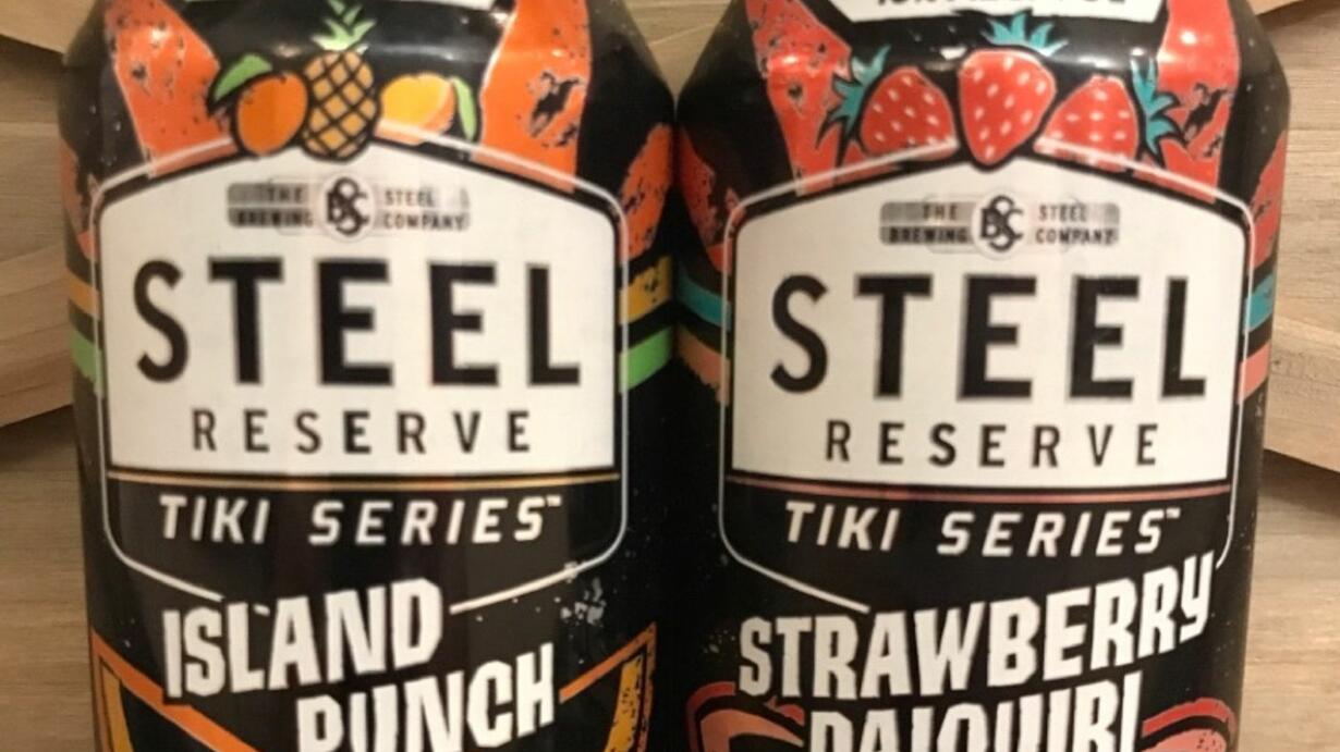 Steel Reserve Island Punch and Steel Reserve Strawberry Daiquiri are the two new offerings from the Steel Reserve Tiki Series that hit shelves earlier this year. These are coming in at 10% ALC./VOL. in a 16oz can and 2% ABV. higher than the Steel Reserve Alloy Series, but the can is 8oz smaller.