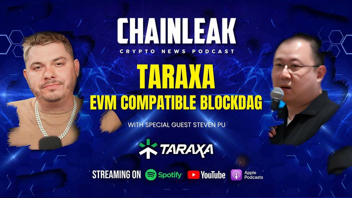In this episode of ChainLeak, we explore “Taraxa – EVM Compatible BlockDAG” with special guest Steven Pu. Join us as we uncover how Taraxa is revolutionizing blockchain technology through its unique BlockDAG architecture, EVM compatibility, and focus on building trust in informal transactions.