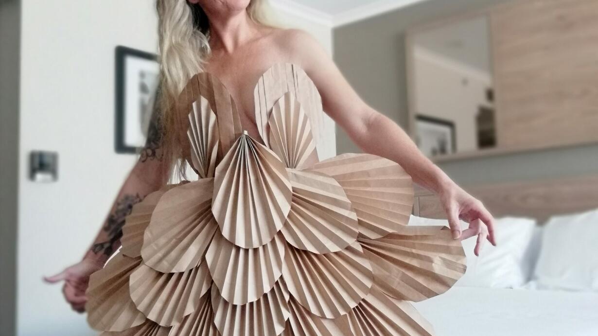 THIS ONE IS IN DUTCH - What do you do if you are traveling back to Australia from your mother's funeral and have to spend 2 weeks in a lonely Covid-19 quarantine hotel room, without much in the way of support for your emotional wellbeing or indeed, anything to do at all. Weekly, in Australia, 100's of people find themselves isolated from the world because federal regulations mandate that all overseas travelers go into 14-day quarantine upon arrival in Australia. Monique Mach née Walraven decided to make the best of a dire situation and used the 3 brown paper bags she would collect each day from food deliveries to make... stuff. Sometime a hat, sometimes a dress, and even the Statue of Liberty. When she decided to post her creations on Facebook, the good news story went viral!