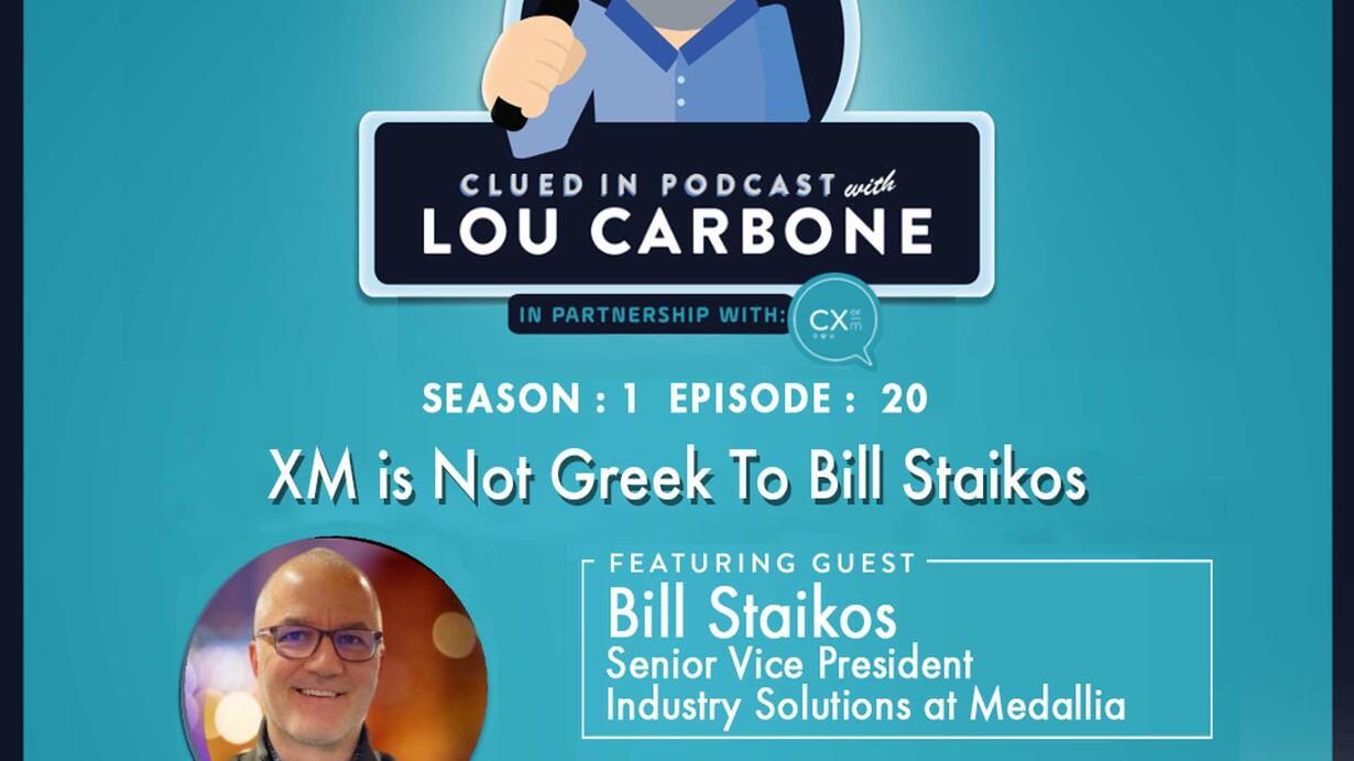 In this episode of Clued In with Lou Carbone, Lou’s guest is Bill Staikos, who just recently left years of working on CX in financial services to take a position as SVP, Industry Solutions at Medallia. Lou and Bill have a practical discussion around Bill’s journey to his new position. Most critically they discuss the impact and utilization of experience management technology tools that can significantly create greater impact on creating navigation for managers and employees.