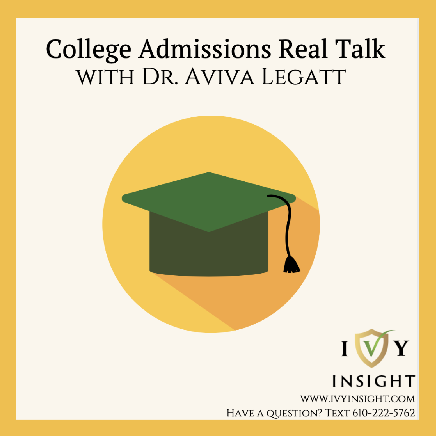 Welcome to College Admissions Real Talk with Dr. Aviva Legatt, a podcast that features college admissions tips for students seeking admission to top-tier colleges. Each episode will feature an important tip for your college admissions success, delivered with candor and love. If you’ve ever wanted to take a peek inside the mind of a college admissions officer, this is your chance. So… what’s your dream school? Listen to the podcast trailer to get a sneak preview, and join us Monday through Friday starting on January 11th for daily college admissions insights! Have a question? Text 610-222-5762. VIP Pass to Virtual Summit, which includes lifetime access to all recordings, Live Exclusive Q&A with Dr. Legatt during the week of April 5, and Dr. Legatt’s Template Pack ($397 value): http://bit.ly/SummitVIPPass Dr. Aviva Legatt’s book, Get Real and Get In available through St. Martin’s Press: www.getrealandgetin.com One-to-one admissions consulting through our Insight to Acceptance Programs: https://ivyinsight.com/our-programs/ To get an externship or research mentorship, apply for our Emerging Leader Program: https://ivyinsight.com/emerging-leader-program/ For on-demand guidance on your college application process, check out our College Admissions Bootcamp Course: https://ivyinsight.com/college-admissions-bootcamp/ Join College Admissions Talk on Clubhouse: http://bit.ly/CollegeAdmissionsTalkCH Follow Dr. Legatt on Clubhouse @CollegeInsight SmartTrack Discount (College Affordability Planning Tool): https://join.smarttrackcollegefunding.com/ivy-insight