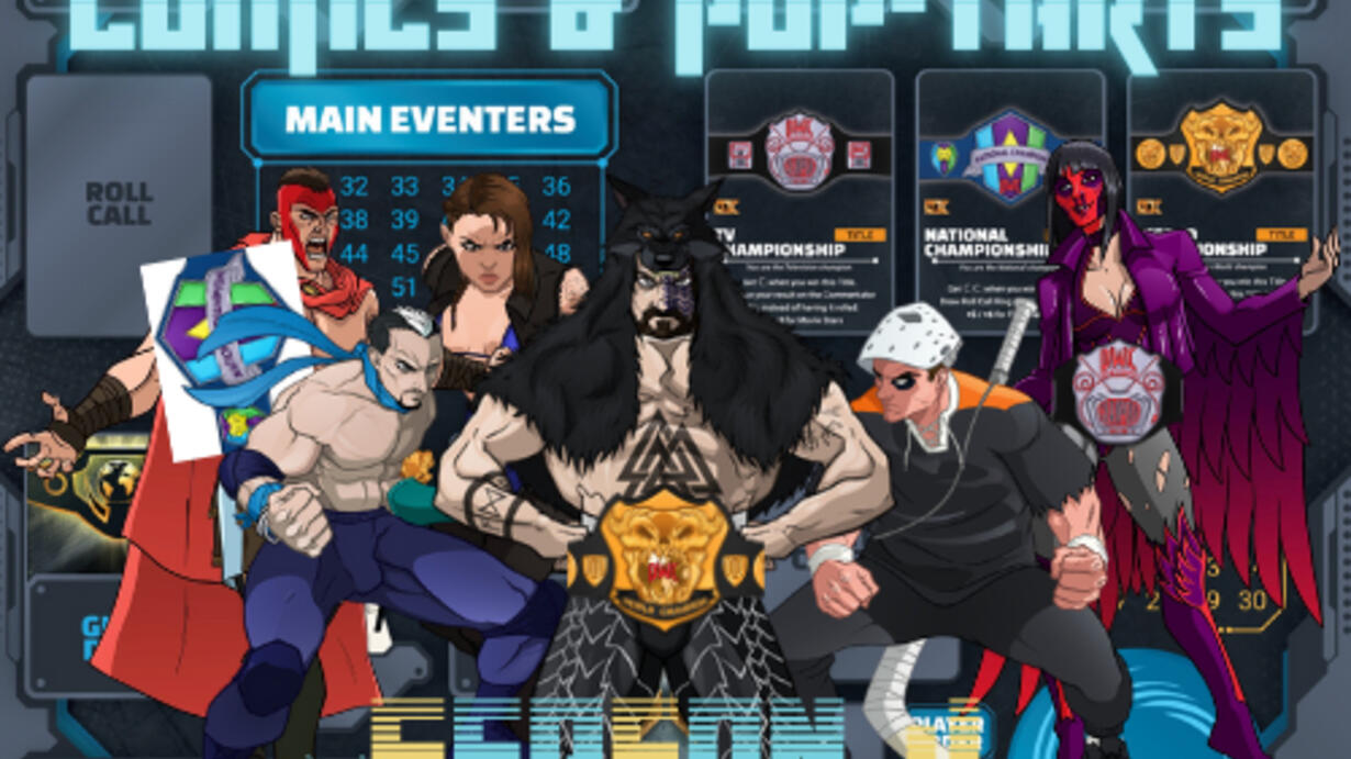 The bell rings as Diabolical Dave's DCW roster invades the Comics & Pop-tarts Podcast, "Hey! That's my mic?" Mike Menard snatches Inevitable Mike's microphone..."Grimsteel Games has something to say...SHUT UP!!! Now--" Corey Tomlinson, The EIC of the DCW, and Jean Ducharme, The Director...Mike's lackeys stand proud beside him. "Diabolical Championship Wrestling is coming to a tabletop near you whether you like it or not," screams Mike. Wrestling, TTRPG, Art, Champions, oh my! Let's listen to what champions are made of by this diabolical trio of TTRPG glory.