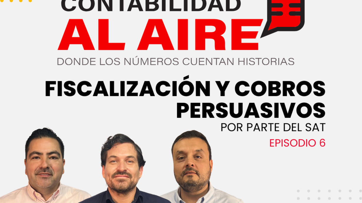 En este imprescindible episodio de “Contabilidad al Aire”, abordamos un tema que toca directamente a todo contribuyente y empresa en México: la fiscalización y los cobros persuasivos realizados por el Servicio de Administración Tributaria (SAT). Conducido por expertos en la materia, CP. y LD. Sindy García Arciniega, Lic. Julian Armando Araux Rendon, y Lic. Héctor Morales Ibarra, este episodio ofrece una visión completa sobre cómo el SAT lleva a cabo estas acciones y qué significa esto para los contribuyentes.