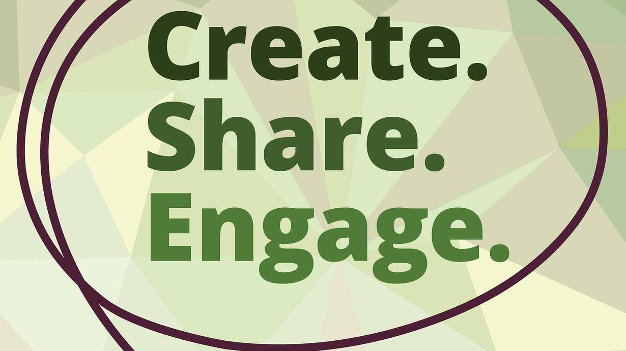 'Create. Share. Engage.' This is