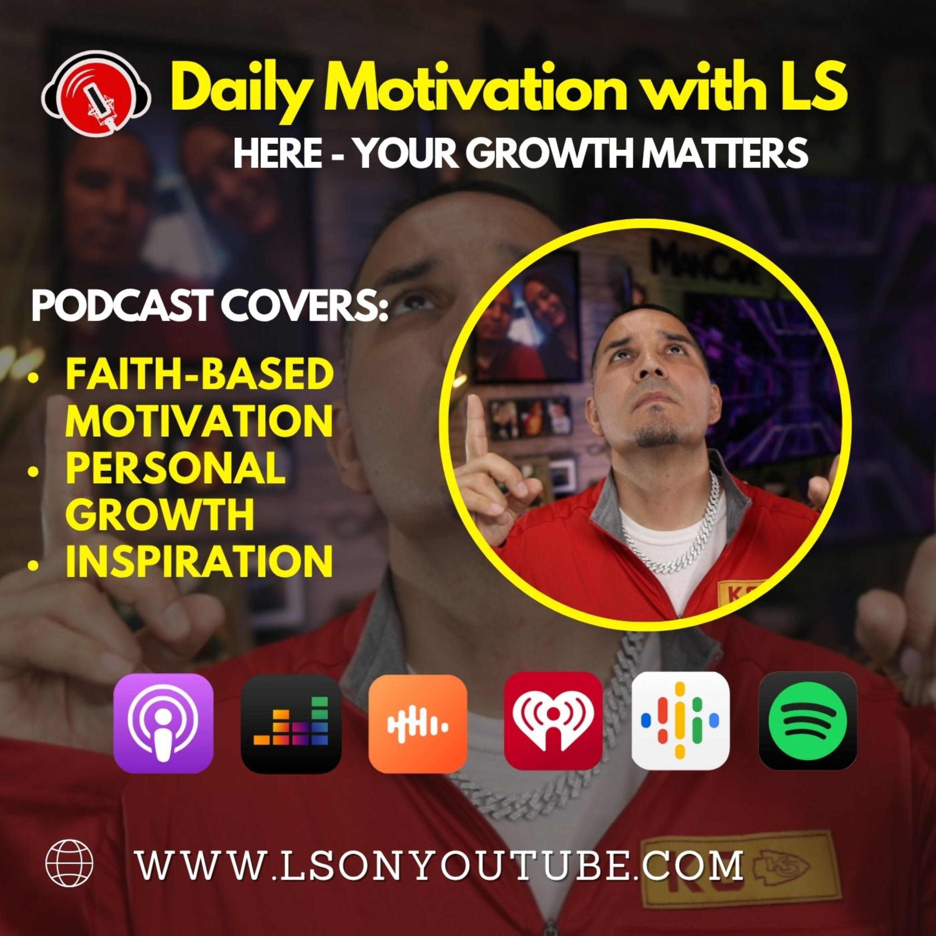Here - Your Growth Matters! I’m Lalo LS Salcedo, and this space is all about Faith-Based Motivation & Personal Growth content. If you’re looking for daily motivation, you’re in the right place. I am focused on inspiring others through themes like sobriety, overcoming fear, resilience, integrity, and personal growth. I share from my own experiences, offering encouragement to help others grow and stay true to their values. I’m also passionate about sharing messages rooted in Christian principles, offering hope and motivation from a faith-based perspective. Subscribe and join me on this journey.