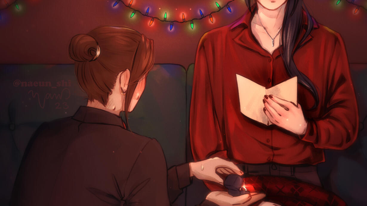 Core tags (highly recommend viewing original fic linked below for ALL tags): Christmas Fluff, Christmas party, Establish Relationship, Inspired by Hallmark movies, Happy Ending, Mu Qing's mother is mentioned, boys love, yaoi, Feng Xin, Mu Qing,