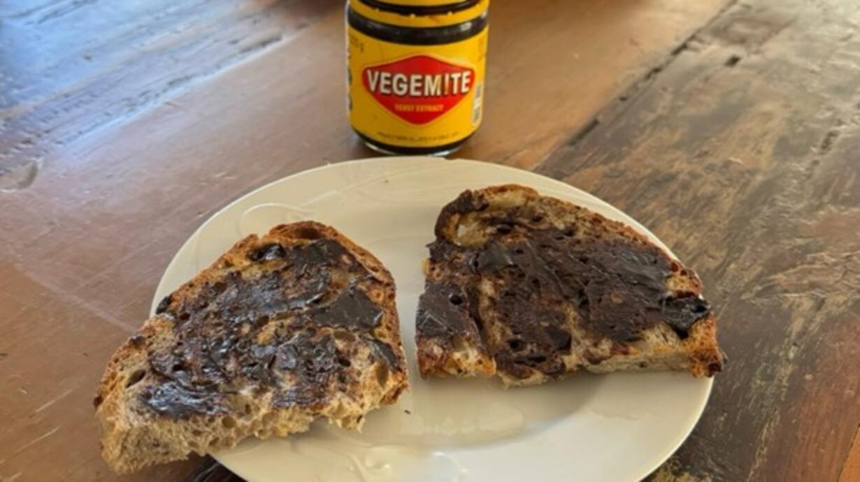 "Okay. I wanted to ask you a question about Vegemite. I just need you to hear a little bit of the chew of my toast that has Vegemite on it. Normally, I wouldn't do a podcast about Vegemite or food unless I was talking to, like, the inventor of Vegemite, but it's a fascinating paste that people put on their bread, and it's. It's kind of famous. It was made famous by men at work in that crazy wonderful song called Business As Usual."