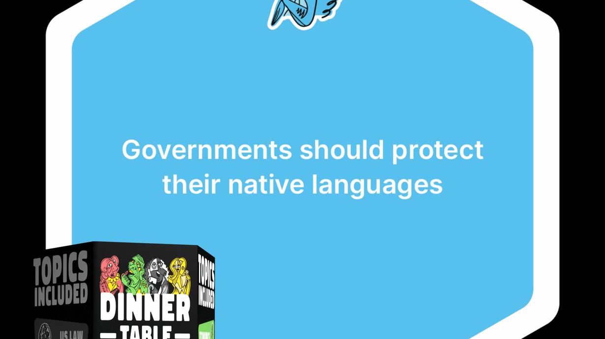 Welcome to your Dinner Table Debates Daily Deep Dive, where we explore real topics from our decks and give you everything you need to debate, in under 10 minutes. Today's topic is "Governments should protect their native languages" and comes from our Full Size Essentials Collection deck. Let’s dig in.