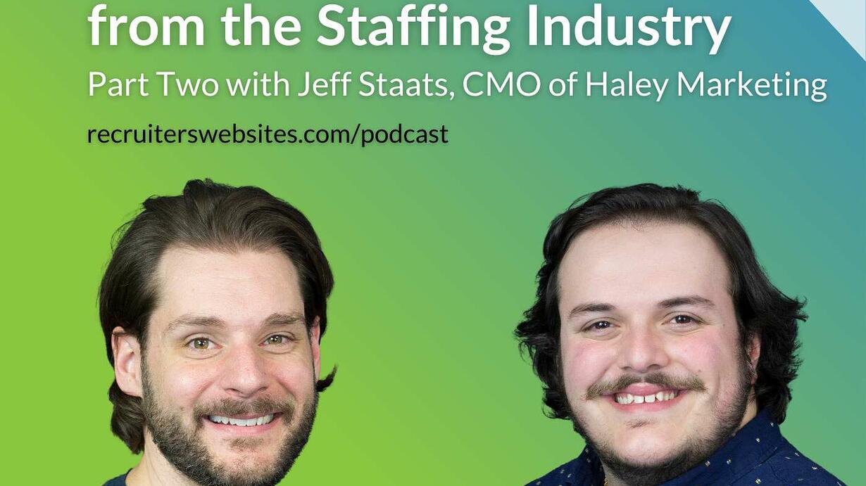 In part two of this two-part series, hosts Steve Gipson and Ryan Berger sit down with Jeff Staats, Chief Marketing Officer at Haley Marketing, to discuss what recruiting and staffing firms should be doing differently in their marketing efforts.