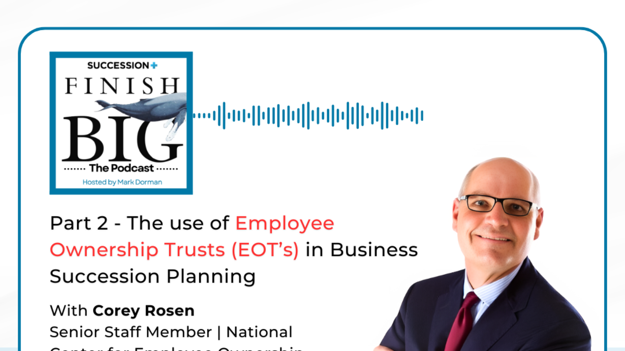 In this episode of the Finish Big Podcast, host Mark Dorman welcomes back Corey Rosen, founder of the National Center for Employee Ownership (NCEO), for Part 2 of their conversation on alternative ownership structures—specifically, the Employee Ownership Trust (EOT).
