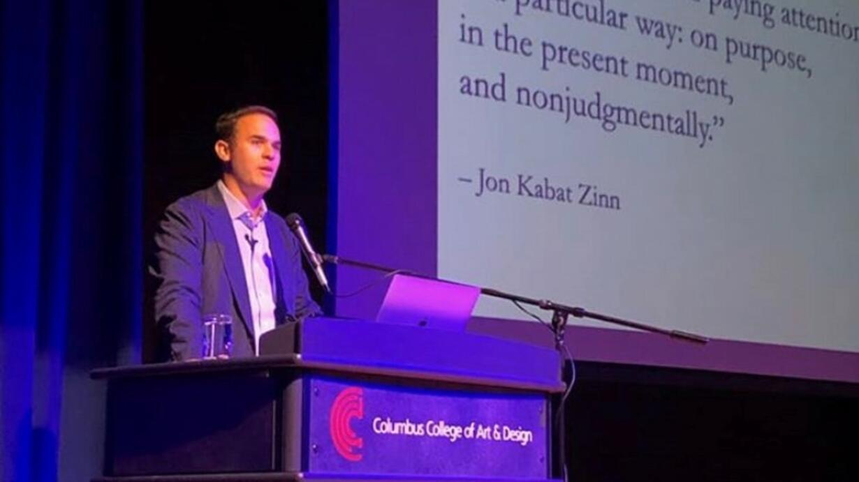 Selections from a recent talk with New York Times writer and author David Gelles who was on campus as part of the CCAD President’s Lecture Series. From the sculptor’s studio to the concert hall, mindfulness and meditation have emerged as essential tools for artists of all mediums, fueling them with inspiration and giving them enhanced focus. Gelles’ 2015 book Mindful Work brings together his 15 years of meditation practice and his work as a business journalist, shedding light on how business leaders have discovered that meditation can be key to fostering a happier, more productive workplace. View the full talk on CCAD's YouTube page, youtube.com/ccadedu