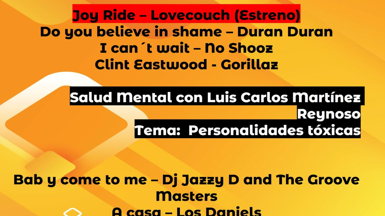 A toda la comunidad de #SectorFM, compartimos el programa en vivo del periodista Gerardo Villela en la radio www.sectorfm.com del martes 27 de febrero de 2024 en el horario de 6 a 8 pm hora de la Ciudad de México. Escúchalo completo en este enlace: https://go.ivoox.com/rf/125075435 Estas son las canciones que escucharás en este programa de radio convertido en podcast. Joy Ride – Lovecouch (Estreno) Do you believe in shame – Duran Duran I can´t wait – No Shooz Clint Eastwood - Gorillaz Baby come to me – Dj Jazzy D and The Groove Masters A casa – Los Daniels Blues en Harlem – Paco Damas y Miguel Ríos Take me to the river – Revival (Estreno) Este es el tema del programa del 27 de febrero de 2024 #Salud Mental con el psicólogo Luis Carlos Martínez Reynoso Tema: Personalidades tóxicas Escucha el programa completo en este enlace: https://go.ivoox.com/rf/125075435 ** No te pierdas todos nuestros contenidos aquí: Escucha #SectorFM en cualquiera de nuestros dos URL’s www.sectorfm.com www.emisoras.com.mx/sector ***Todos los programa en vivo en este enlace*** Entra al canal de los programas de Gerardo Villela en Ivoox en este enlace: https://www.ivoox.com/podcast-gerardo-vivo-sectorfm_sq_f11330888_1.html Entra al canal de los programas de Gerardo Villela en spotify en este enlace: https://open.spotify.com/show/1STwWksqn2yf0hwkYytwBb?si=387397888b764cc8 **Enlaces a más streaming** Enlace Podcast en www.sectorfm.com https://www.sectorfm.com/podcast-5 Enlace Ivoox: https://go.ivoox.com/sq/1356118 Enlace Apple Podcast https://podcasts.apple.com/us/podcast/sector-fm-en-podcast/id1700380081 Enlace Spotify: https://open.spotify.com/show/1dkCzHqKpSbxWzYSICidBi?si=a08c2ad03bfb4c53&nd=1 Enlace Deezer: https://www.deezer.com/es/show/2972372?utm_campaign=clipboard-generic&utm_source=user_sharing&utm_medium=desktop&utm_content=talk_show-2972372&deferredFl=1 Enlace Amazon Music: https://music.amazon.es/podcasts/42ca42d3-b5ee-43b7-a56a-c4dc37346322/sector-fm-en-podcast Enlace Youtube https://www.youtube.com/channel/UCE3XSkEjJctLqHUNsVCeXZg Enlace emisoras punto com punto mx https://emisoras.com.mx/sector/ Link tree: https://linktr.ee/sectorfm Genera comunidad de #SectorFM, descarga la app Wix-Sectorfm para IOS y Android aquí: https://apps.wix.com/place-invites/invite-lp/v2?bid=9866ec9a-1dc7-4829-971f-dc2ef7d80b21&ref=pre_banner_top Redes Sociales de #SectorFM www.instagram.com/sectorfmradio ww.facebook.com/sectorfm www.twitter.com/sectorfm www.threads.net/@sectorfmradio –ooOoo– #sectorfm #sectorfmensuspropiaspalabras #rockdelaaalazsectorfm #curaduriamusicalsectorfm #musicmatterssectorfm