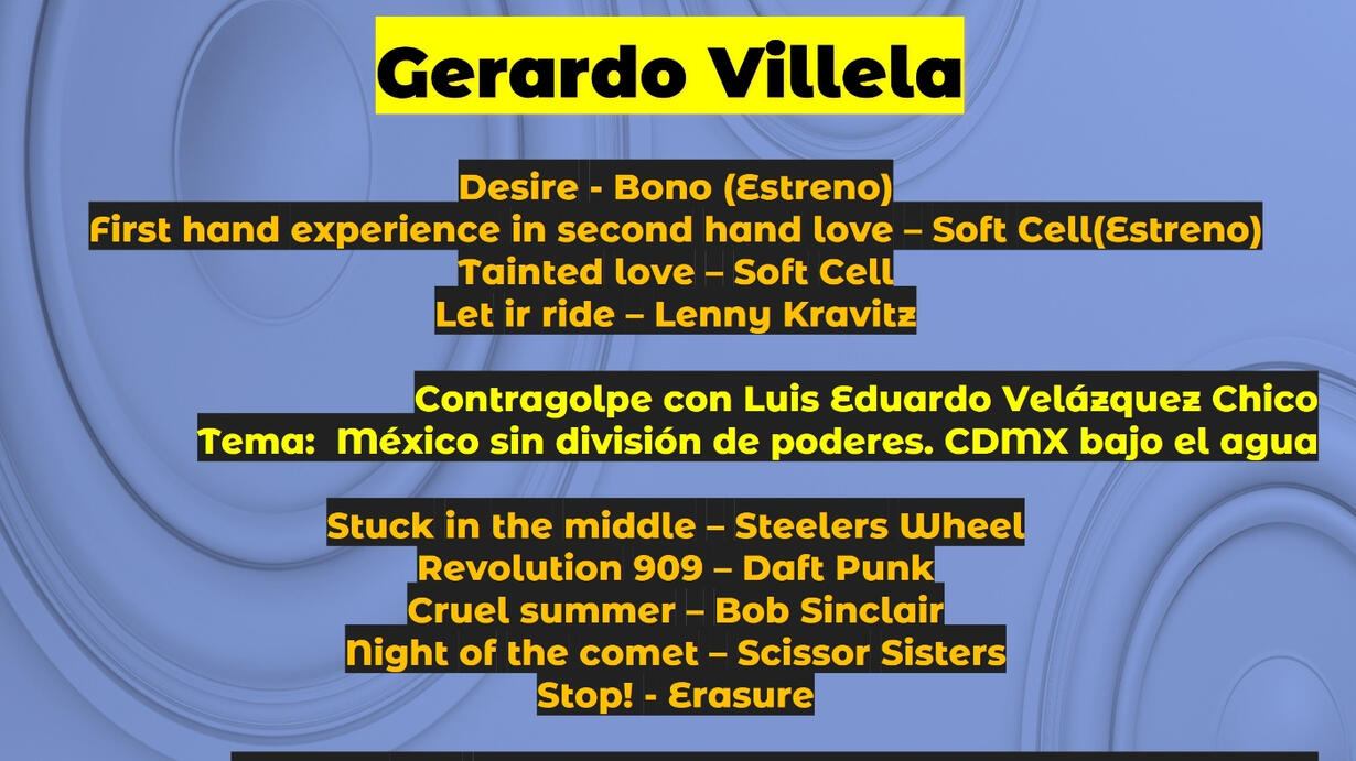A toda la comunidad de #SectorFM, compartimos el programa en vivo del periodista Gerardo Villela en la radio www.sectorfm.com del miércoles 04 de junio de 2025 en el horario de 6 a 8 pm hora de la Ciudad de México. Este es el contenido de este programa de radio convertido en podcast. Desire - Bono (Estreno) First hand experience in second hand love – Soft Cell(Estreno) Tainted love – Soft Cell Let ir ride – Lenny Kravitz Contragolpe con Luis Eduardo Velázquez Chico Tema: México sin división de poderes. CDMX bajo el agua Stuck in the middle – Steelers Wheel Revolution 909 – Daft Punk Cruel summer – Bob Sinclair Night of the comet – Scissor Sisters Stop! - Erasure Espacio info CDMX con Laura Lizette Enríquez Rodríguez Tema: Día Internacional de los Archivos You spin me round – Dead or Alive ** No te pierdas todos nuestros contenidos aquí: Escucha #SectorFM en www.sectorfm.com Baja la app de Sector FM en https://play.google.com/store/apps/details?id=sectorfm.radio&pcampaignid=web_share ***Todos los programa en vivo en este enlace*** Entra al canal de los programas de Gerardo Villela en Ivoox en este enlace: https://www.ivoox.com/podcast-gerardo-vivo-sectorfm_sq_f11330888_1.html Entra al canal de los programas de Gerardo Villela en spotify en este enlace: https://open.spotify.com/show/1STwWksqn2yf0hwkYytwBb?si=387397888b764cc8 **Enlaces a más streaming** Enlace Podcast en www.sectorfm.com https://www.sectorfm.com/podcast-5 Enlace Ivoox: https://go.ivoox.com/sq/1356118 Enlace Apple Podcast https://podcasts.apple.com/us/podcast/sector-fm-en-podcast/id1700380081 Enlace Spotify: https://open.spotify.com/show/1dkCzHqKpSbxWzYSICidBi?si=a08c2ad03bfb4c53&nd=1 Enlace Deezer: https://www.deezer.com/es/show/2972372?utm_campaign=clipboard-generic&utm_source=user_sharing&utm_medium=desktop&utm_content=talk_show-2972372&deferredFl=1 Enlace Amazon Music: https://music.amazon.es/podcasts/42ca42d3-b5ee-43b7-a56a-c4dc37346322/sector-fm-en-podcast Enlace Youtube https://www.youtube.com/channel/UCE3XSkEjJctLqHUNsVCeXZg Link tree: https://linktr.ee/sectorfm Genera comunidad de #SectorFM, descarga la app Wix-Sectorfm para IOS y Android aquí: https://apps.wix.com/place-invites/invite-lp/v2?bid=9866ec9a-1dc7-4829-971f-dc2ef7d80b21&ref=pre_banner_top Redes Sociales de #SectorFM www.instagram.com/sectorfmradio ww.facebook.com/sectorfm www.twitter.com/sectorfm www.threads.net/@sectorfmradio –ooOoo– #sectorfm #sectorfmensuspropiaspalabras #rockdelaaalazsectorfm #curaduriamusicalsectorfm #musicmatterssectorfm