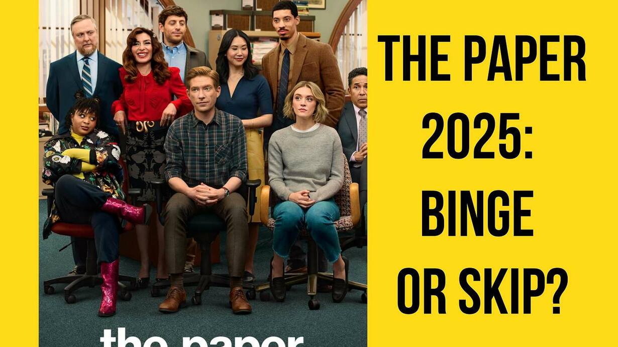 Peacock’s PAPER (2025) review — a spoiler-free breakdown of Greg Daniels’ The Office–universe mockumentary starring Domhnall Gleeson, covering laughs, cast highlights, and why this Toledo newsroom is a must-watch.
