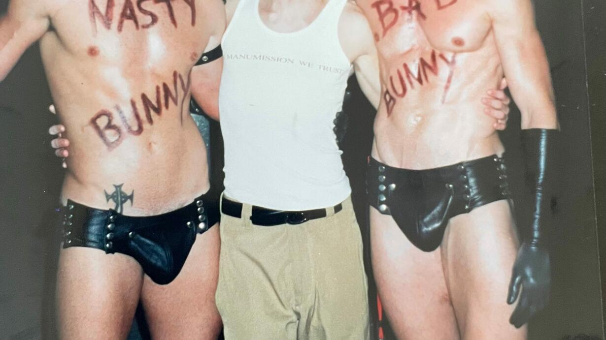I was prodded by my workout partner, Adam, to join the scene. He had connections with the producers, custom design skills to create our Bad Bunny gear, and a body and cock that demanded attention. He made it possible for me to get paid to go, including a shared hotel room at Motel 6. All I needed to do was work a couple of doors and dance on a box at the military-themed nighttime pool party.