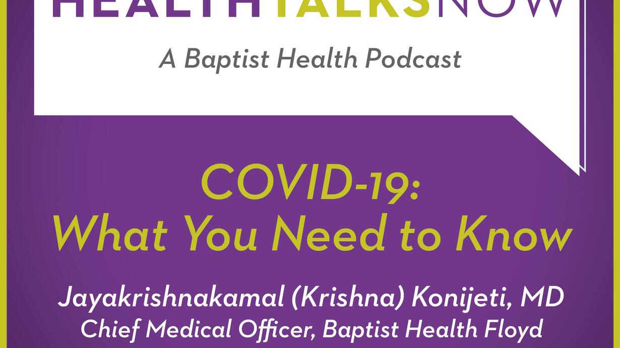 Baptist Health Floyd’s Chief Medical Officer, Jayakrishnakamal “Krishna” Konijeti, MD, issued a public service announcement this week. His message was clear: Stay home, southern Indiana. Speaking by phone for this podcast, Dr. Konijeti expands upon this plea to those in the community where he lives and practices medicine. He explains what it means to “stay at home” and how doing so can help his hospital and others control the anticipated peak of COVID-19 cases. He speaks frankly about the pandemic, including current case numbers, the need for widespread testing, and the steps Baptist Health has taken to prepare and protect both patients and staff. Listen now to learn what you need to know to keep your family safe.