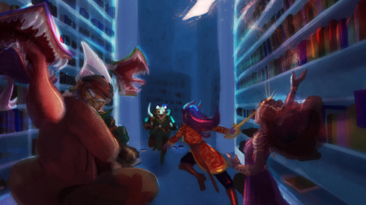 As fiends descend upon the Court of Influence, the party searches a deadly library to uncover answers that will snatch victory from the jaws of defeat.