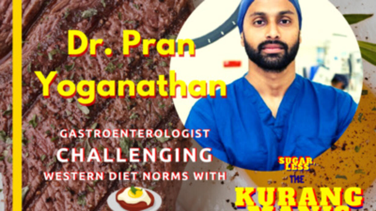 In this 3rd episode of The Kurang Manis Podcast, we meet Dr. Pran Yoganathan, a gastroenterologist and hepatologist based in Sydney. A passionate educator, a Mathematician-turned doctor who has lived in Sri Lanka, Africa, New Zealand and Australia, Dr. Pran wants to put the power in his patients' hands and provide them with data so that they can embark on their own journeys of self-healing using the philosophy of ālet food be thy medicineā. Harnessing creative technology and 14,400 followers on Instagram @dr_pran_yoganathan, he stresses that his educational memes are not medical advice or recommendations, simply his opinions -- and rather strong science-backed opinions they are too! Find out why Dr. Pran's diet of choice - grass-fed steak and eggs has raised eyebrows and temperatures not just in the oven, but in conversation with peers as well. Ask him about butyrate and you'll get him all fired up and excited! Now, are WE ready to absorb the fact that we're meant to burn fat for energy and not glycogen? Let's save that for perhaps another episode. Joining co-hosts Jasmine Low and Nikki Yeo in this same episode are Dr. Desmond Menon, medical lab scientist featured in Ep. 2 Do Our Genes Predispose us to Diseases of our Parents and Malaysia's "biggest" stand-up comedian Papi Zak.