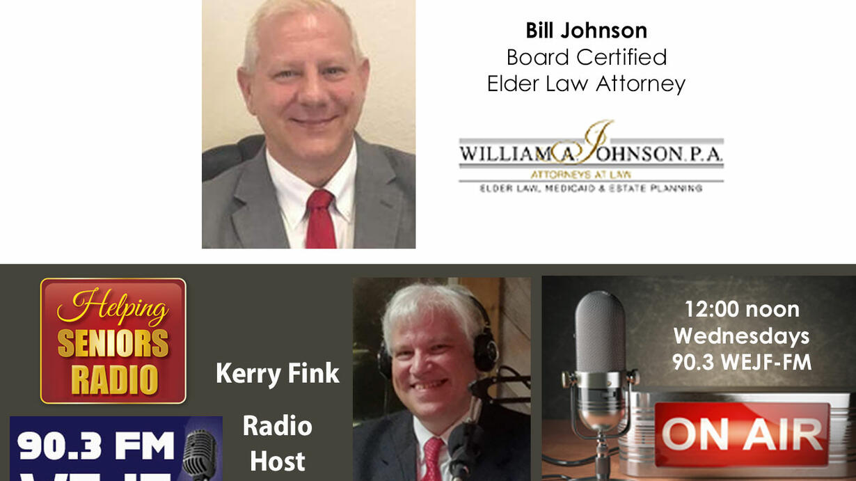 Helping Seniors Executive Director Kerry Fink visits with Board Certified Elder Law Attorney Bill Johnson (William A. Johnson P.A.) for a discussion about what Medicare will pay and when Medicaid is needed - as it pertains to Long Term Care issues.