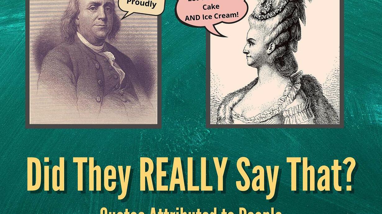 You can find quotes in most places these days, on cards, shirts, magnets, hanging in offices or you may even have one hanging over your fire place. In this episode, we explore some of the most famous historical quotes from "Let them eat cake!" to "When going through hell, keep going." and we also do some fact checking as to whether the famous people they're attributed to actually said them. We also take a look into the times and circumstances in which they may (or may not) have been said because in the words of Yogi Berra, "I really didn't say everything I said."