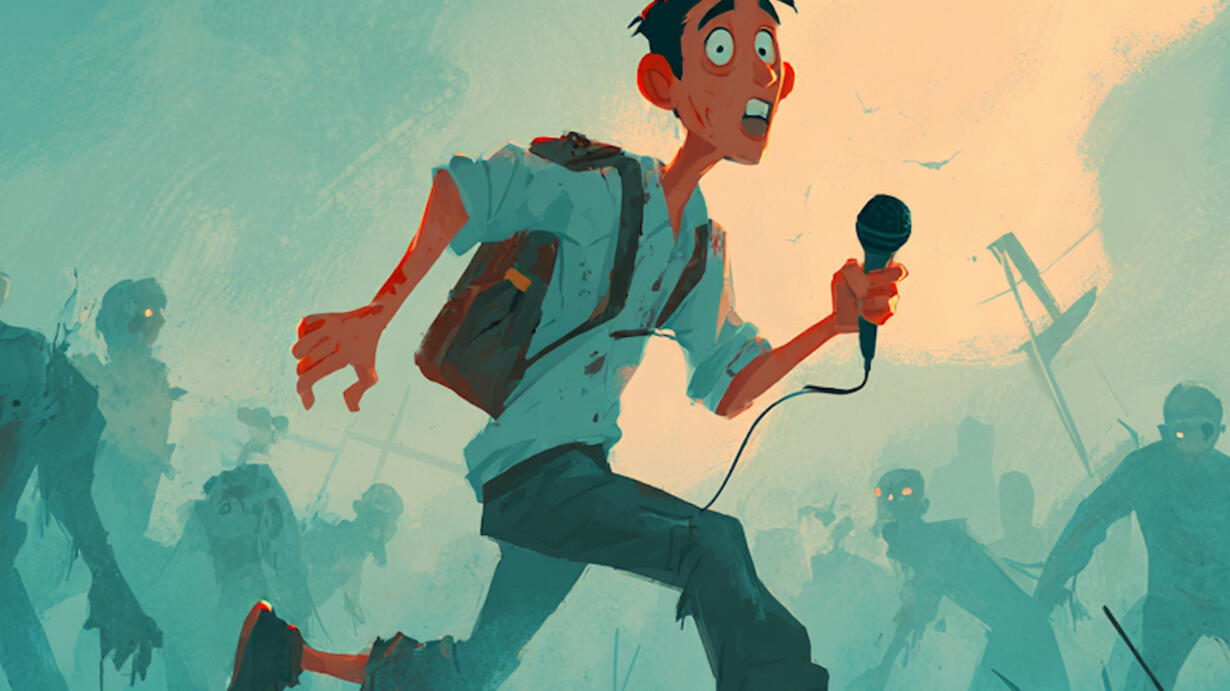 A horrific zombie apocalypse has ravaged the world—but hardly anyone seems to notice. One lone podcast sets out to interview those navigating this strange new reality: from people attending mindful zombie retreats and binging zombie media, to those stockpiling shotguns and fortifying bunkers, to others disappearing into the woods to build something entirely new.