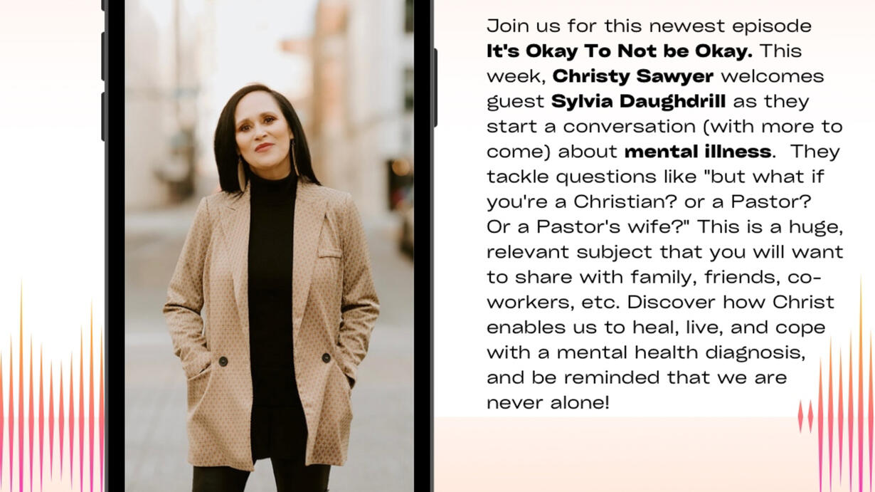 Join us for this newest episode It's Okay To Not be Okay. This week, Christy Sawyer welcomes guest Sylvia Daughdrill as they start a conversation (with more to come) about mental illness. They tackle questions like "but what if you're a Christian? or a Pastor? Or a Pastor's wife?" This is a huge, relevant subject that you will want to share with family, friends, co-workers, etc. Discover how Christ enables us to heal, live, and cope with a mental health diagnosis, and be reminded that we are never alone!