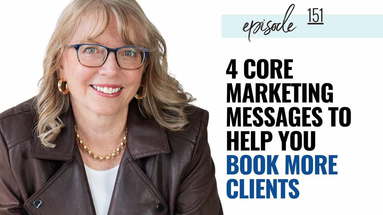 In this episode, I’m sharing the 4 Core Marketing Messages that every business owner needs to have ready to go so you can confidently share what you do, wherever and whenever the opportunity comes up. And you will learn where to share these in your marketing - website content, emails, blogs, social media and yes, even when talking to people face to face at networking events.