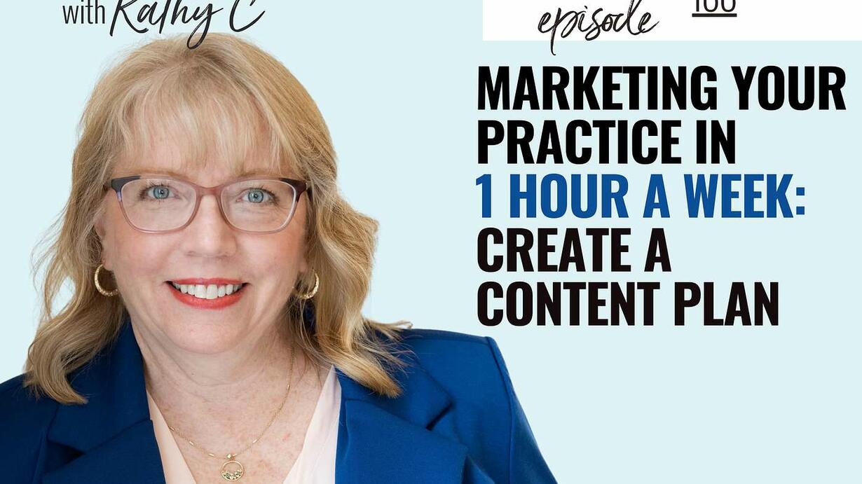 This episode is part two of the Marketing Your Practice in 1 Hour a Week series. In part 1, we set the stage by looking at goals, barriers, and the schedule that drives your plan. Now it is time to see the full one-hour plan in action and take your first step to making it work in your practice. Creating Content.