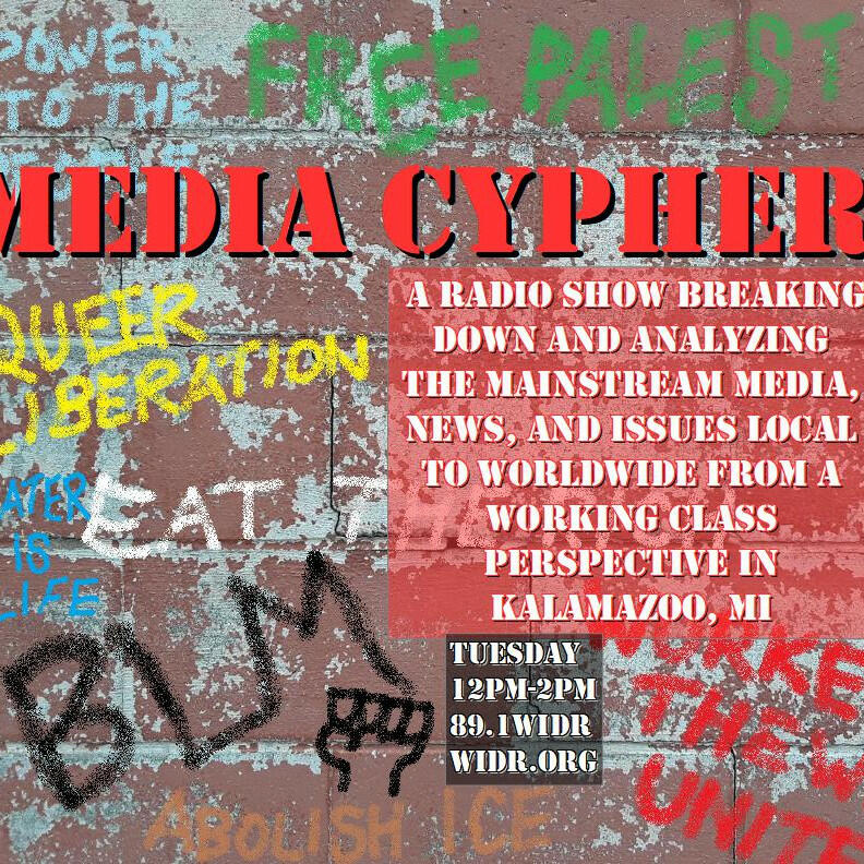 Media Cyphers is a weekly radio show out of Kalamazoo, MI where we discuss local issues, analyze and critique local and national media, cover important organizing in the SW Michigan region, and call out the establishment on its B.S. Listen to us live every Tuesday from 12PM-2PM on 89.1 WIDR or online at widrfm.org.