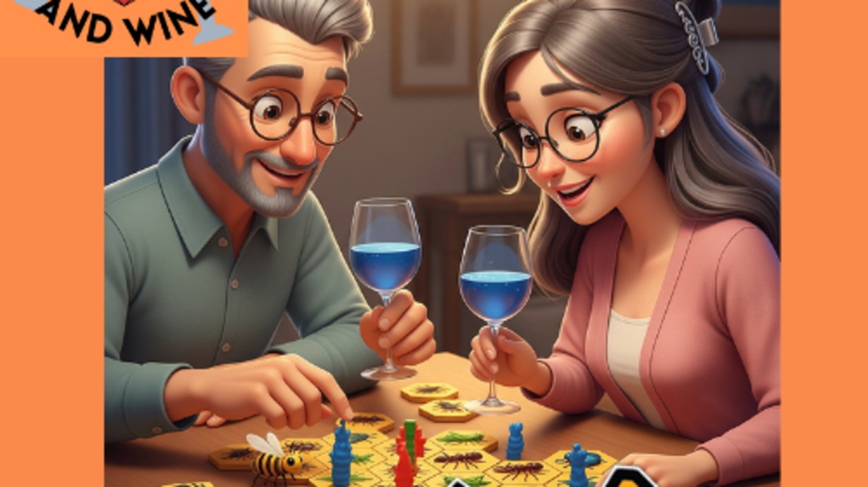 Welcome to Meeples & Wine, your podcast of board game reviews for couples, with a drink in hand! In today's episode, we're tasting Clad & Cordon Vineyard's Cordon Blue, a blueberry wine from Creal Springs, Illinois. It has a sweet and fruity profile with ripe blueberry notes. This blueberry wine pairs well with creamy desserts, various cheeses, light salads, sandwiches, and even certain meats like chicken or fish. We're playing Hive, an abstract board game where the goal is to trap your opponent's Queen Bee. It's a two-player game designed and illustrated by John Yianni, and published by Gen42 Games. Each player has 11 insect pieces, including a Queen Bee, Spiders, Beetles, Grasshoppers, and Ants, each with unique movement rules. The game is played without a board, and pieces must remain connected in a "hive". We also discuss expansions like the Ladybug, Mosquito, and Pillbug, which add new movement abilities and strategic options to the game. For our "Last Call" segment, we looked at "Trenchcoat Raccoons" on Gamefound, a fast, rules-light tabletop RPG about chaotic heists and cartoon logic. Players control raccoons in a stack, pretending to be a human in a trenchcoat. Next week, we'll be reviewing Radlands by Roxley Games, a post-apocalyptic game where punk bands fight to destroy rival tribes' camps. You can contact us at meeplesandwine@gmail.com, or find us on Facebook, Twitter, Instagram, or LinkedIn. You can also leave us a voicemail at (707) 572-5282. If you like the show, be sure to share it with a friend! See you next time on Meeples and Wine! Buh-Bye!
