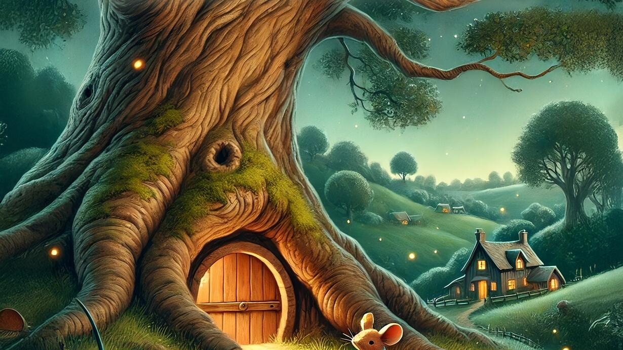 Nel cuore di un piccolo villaggio ai piedi di una grande collina, viveva Nonno Topo, il più saggio tra i topolini. Ogni sera, i giovani del villaggio si radunavano attorno a lui per ascoltare le sue storie. Ma un giorno, qualcosa di strano accadde: la Vecchia Quercia iniziò a tremare, e suoni misteriosi provenivano dalle sue radici.