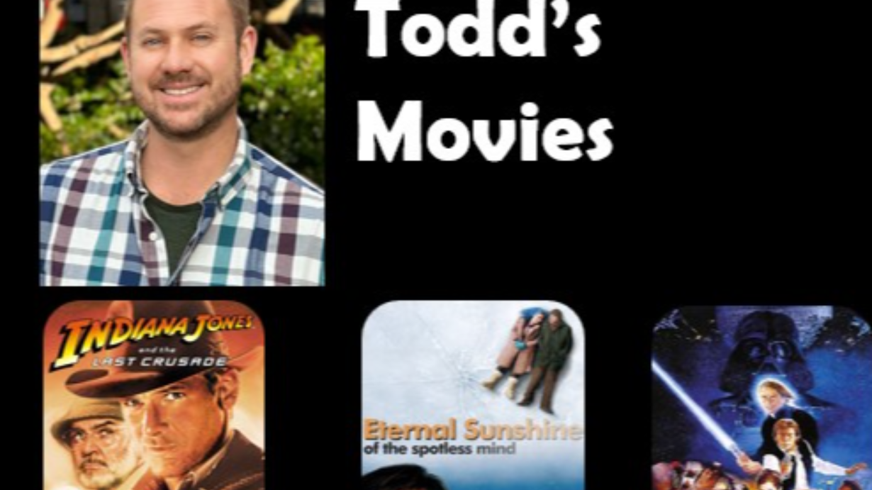 Say Hi to our next guest, Todd Geist. Todd has made a career out of travel and is on his 21st year as a Travel Director crossing the USA and Canada, as well as having set foot in 74 other countries!. He is especially into sci-fi, fantasy, and historical fiction across all medias, and his 3 films come under those genres. Check out Todd’s connections to the film that planted the see for his love of world history and travel, a film that tackles the question about how much pain is useful to us, and the closing chapter in a series that saves the best for last. Films featured are, “Indiana Jones & The Last Crusade”, “Eternal Sunshine of the Spotless Mind” and “Return of the Jedi.”