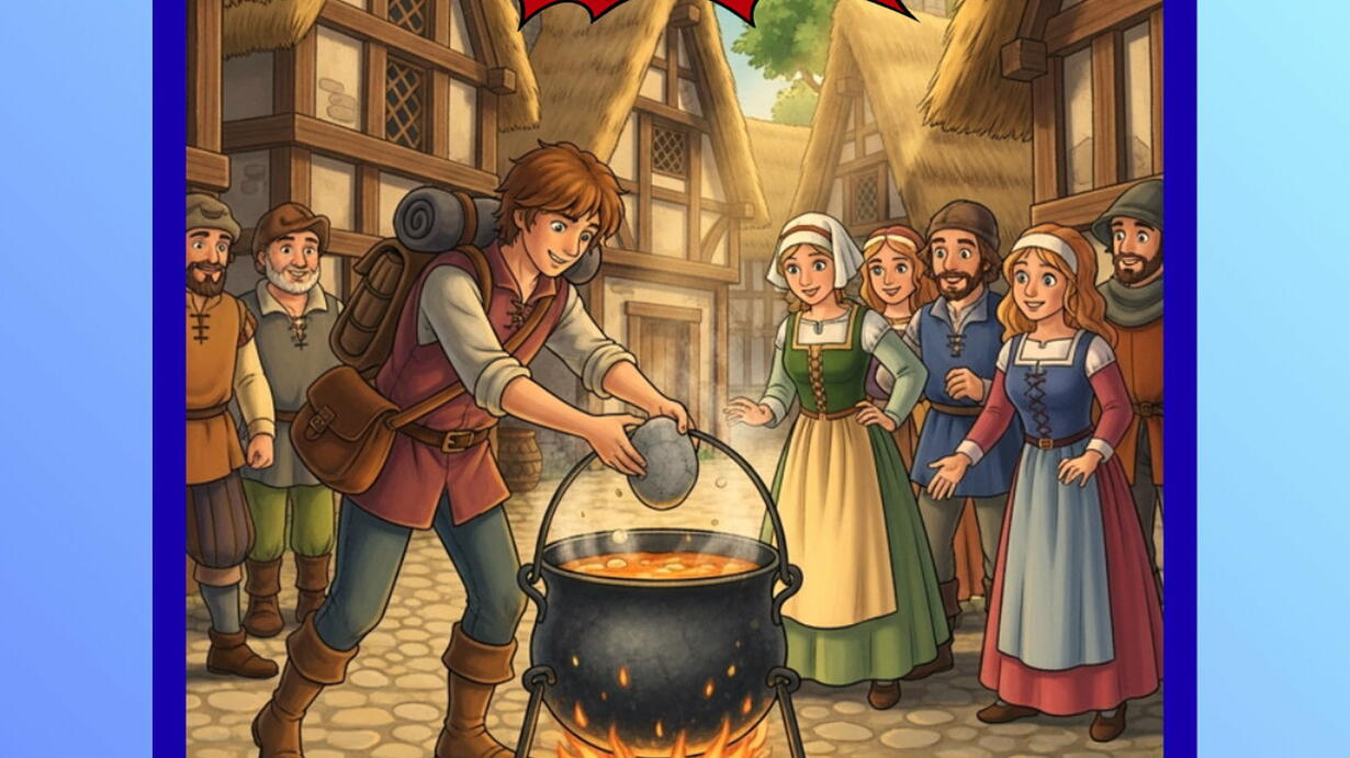 ‘n Moeë reisiger daag in ‘n klein dorpie vol agterdogtige mense op. Hy vra almal om net ‘n klein deeltjie by te dra en leer hulle die geheim van samewerking tydens moeilike tye met sy unieke “Klipsop”. Instagram · Website
