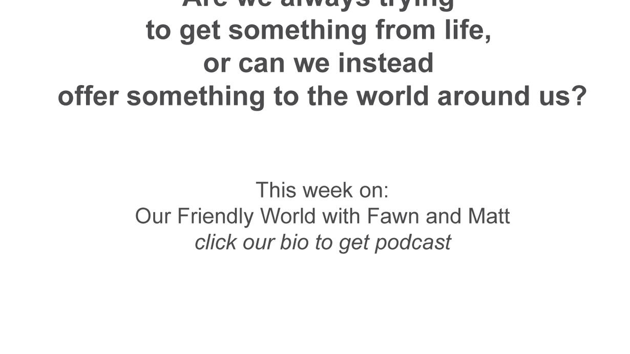 In this episode of Our Friendly World with Fawn and Matt, Fawn opens up about a quiet moment on a road trip that sparked a deep realization — are we always trying to get something from life, or can we instead offer something to the world around us? This thought leads to a bigger discussion about what true power looks like, especially in times when we feel stripped of it — whether in the workplace, society, or even in friendships.