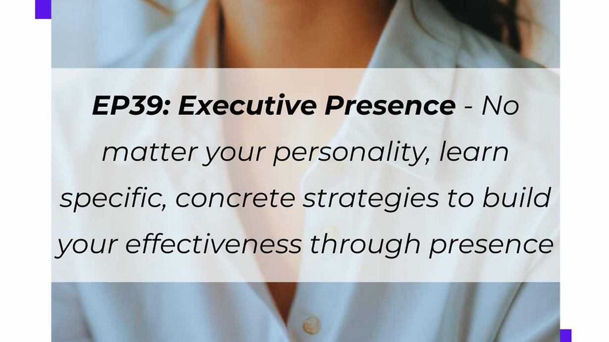 Executive presence is something that inevitably comes up for every business professional, even decades into their careers. At first blush, this can appear very vague and ambiguous, but there are specific, concrete strategies to building your executive presence. It's not an optional thing or purely based on personality. It's a skillset that allows you to be the most effective business professional possible. In this episode, I will dispel the myths and share mindsets and actions that you can apply today.