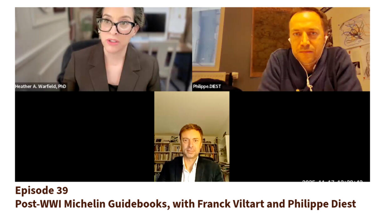 This conversation between Heather A. Warfield, Franck Viltart, and Philippe Diest explores the significance of Michelin guidebooks in the context of post-World War I pilgrimages, focusing on their historical evolution, representation of battlefields, and the role of civilians in post-war narratives. The speakers discuss how these guides have shaped public knowledge and collective memory of the war, as well as their ongoing relevance in contemporary tourism and pilgrimage practices. The conversation is based on Diest’s chapter “Pèleriner dans les régions françaises envahies avec les guides Michelin des champs de bataille” (“Pilgrimage through the Invaded Regions of France with the Michelin Guides to the Battlefields”) in the new volume co-edited by Warfield, Michonneau, and Viltart https://www.peterlang.com/document/1446805.