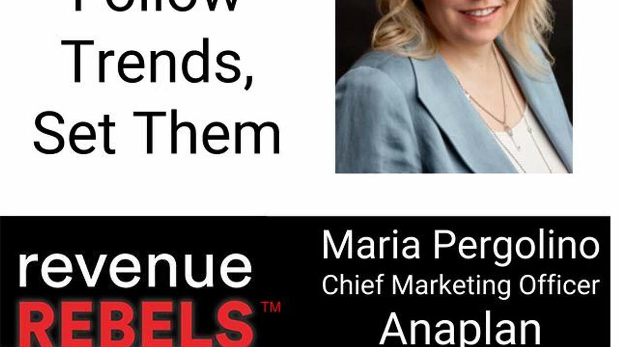 This month on the Revenue Rebels podcast, we’re helping you move from trend-follower to trend-setter as we sit down with rule-breaking marketing leader, Maria Pergolino, Chief Marketing Officer of Anaplan. Stay tuned to learn: