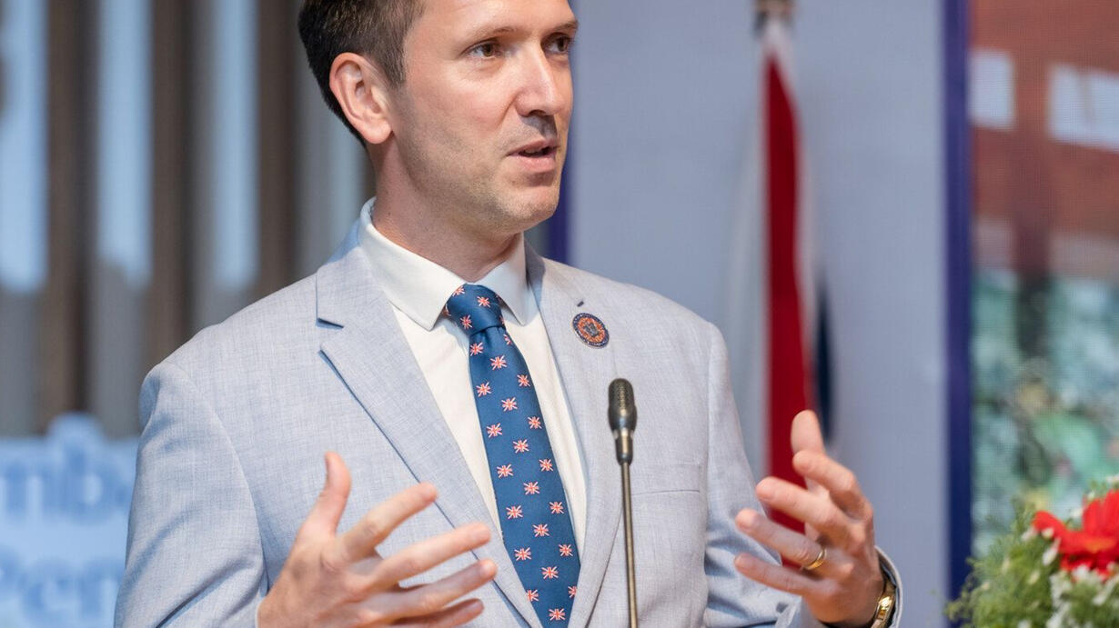 Dominic Williams is the British Ambassador to Cambodia, having joined the Foreign, Commonwealth and Development Office in 2005. His diplomatic career includes postings in France, Sri Lanka and the Maldives, Peru, and Nigeria. He was appointed a Member of the Order of the British Empire (MBE) in 2011 for his contributions during the Sri Lankan conflict. In London, he has worked on UN Peacekeeping, the Syria conflict, and consular affairs. He speaks English, French, Khmer, and Spanish.
