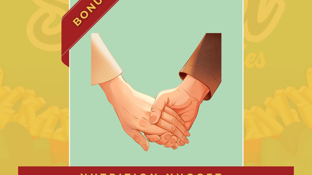 Nutrition Nugget! Bite-sized bonus episodes offer tips, tricks and approachable science. This week, Jenn is talking about holding hands and how something so simple can have a big impact on your health and happiness. She dives into why this small act of human connection can lower stress, calm your mind, and even help your body feel better, with less pain. Jenn keeps it real and relatable, sharing what the science says about this simple gesture. You’ll learn how physical touch supports your emotional health, boosts oxytocin, and reminds us that we’re wired to connect. It’s all about those little moments of well-being that make a big difference in your everyday wellness. Like what you're hearing? Be sure to check out the full-length episodes of new releases every Wednesday. Have an idea for a nutrition nugget? Submit it here: https://asaladwithasideoffries.com/index.php/contact/